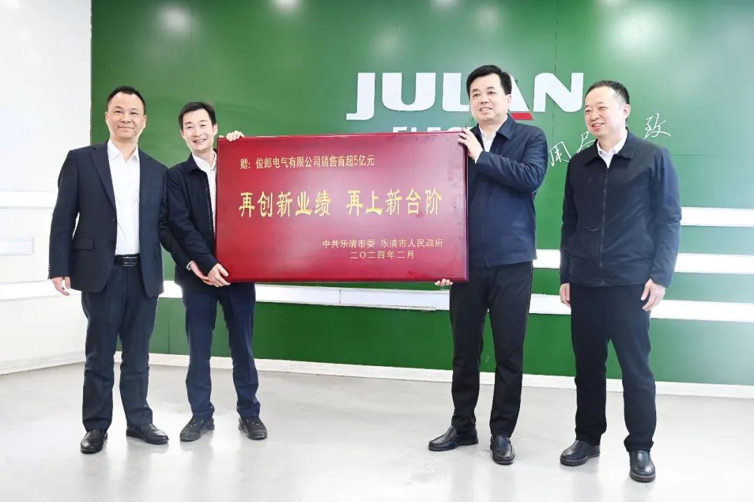 2月18日,农历正月初九,俊郎电气在热闹的鞭炮噼啪声中迎来甲辰龙年开工日。乐清市委书记徐建兵、市委常委副市长叶序锋、市委常委柳市镇党委书记王烨率市、镇等相关部门领导代表市委、市政府,到公司向全体俊郎员工送上新春祝福,并授予“再创新业绩,再上新台阶”荣誉牌匾。当天是开工首日,员工到岗率达到98%。徐建兵书记察看企业早开工情况,勉励企业把握机遇、顺势而上,持续做