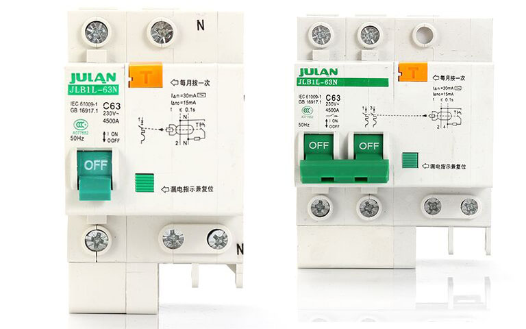 单P漏电开关和双P漏电开关,有人私聊我说,到底这两个哪里不一样?今天就说说它们之间的不同之处。这是单P漏电开关,大部分的家里全安装的是这样的,它有什么作用哪?它管的是短路和漏电,图上的接线端两进两出,没错,但是它只负责L(火线)的漏电,看到那个绿色的开关了吗?只负责火线的闭合以及断开,零线在里面是直接连上的,保持长期闭合状态,跳闸也好漏电也罢,只能断开火线的
